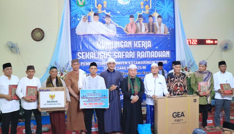 Bupati Kotawaringin Timur (Kotim) H. Halikinnor menghadiri acara Safari Ramadhan 1446 H/2025 M yang dilaksanakan di Masjid Haqqul Yaqin Al-Hadi, Desa Jemaras, Kecamatan Cempaga, pada hari ke-15 bulan Ramadhan. Acara tersebut turut dihadiri oleh Wakil Bupati Kotim Irawati, Ketua TP-PKK Kotim Hj. Khairiah Halikinnor, serta Kepala OPD, Camat setempat, dan Kepala Desa.
