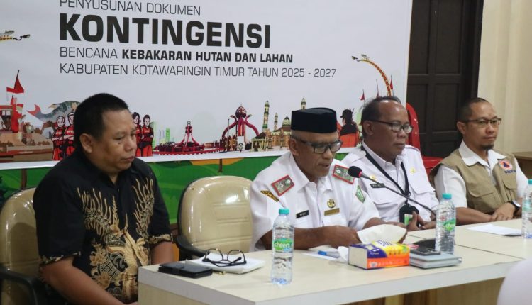 Rapat tersebut dihadiri oleh Penjabat Sekretaris Daerah (PJ Sekda) Kotim, Masri, S.E., CGCAE. Dalam sambutannya, Masri menyampaikan pentingnya penyusunan dokumen kontingensi bencana sebagai langkah antisipasi menghadapi ancaman kebakaran hutan dan lahan.