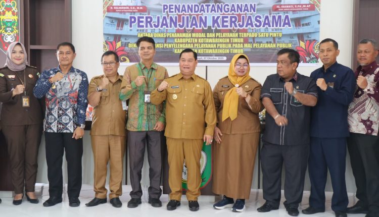 Sampit – Pemerintah Kabupaten Kotawaringin Timur melalui Dinas Penanaman Modal dan Pelayanan Terpadu Satu Pintu (DPMPTSP) menggelar acara Penandatanganan Perpanjangan Perjanjian Kerja Sama dengan instansi penyelenggara pelayanan publik yang tergabung dalam Mal Pelayanan Publik (MPP) Kabupaten Kotim. Kegiatan ini berlangsung di Aula Lantai II Kantor DPMPTSP Kotim, pada Selasa (7/10/2025).