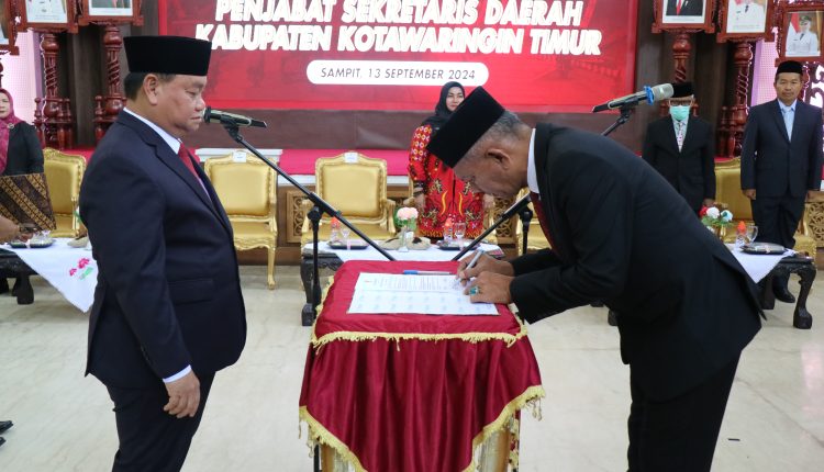 Bupati Kotawaringin Timur (Kotim) H. Halikinnor, S.H., M.M., melantik dan mengambil sumpah janji Penjabat (Pj.) Sekretaris Daerah (Sekda) Kabupaten Kotim Drs. Sanggul Lumban Gaol, MT., Jumat (13/09/2024) bertempat di aula rumah jabatan Bupati.