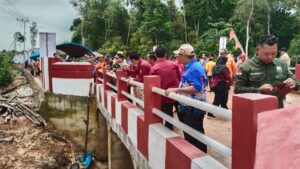 Bupati Kotawaringin Timur (Kotim) H. Halikinnor beserta Jajaran melakukan Kunjungan kerja sekaligus meresmikan Jembatan Penghubung antar Desa Merah dan Desa Tanjung Jorong Sungai Bae Kecamatan Tualan Hulu, Kamis (18/01/2024).