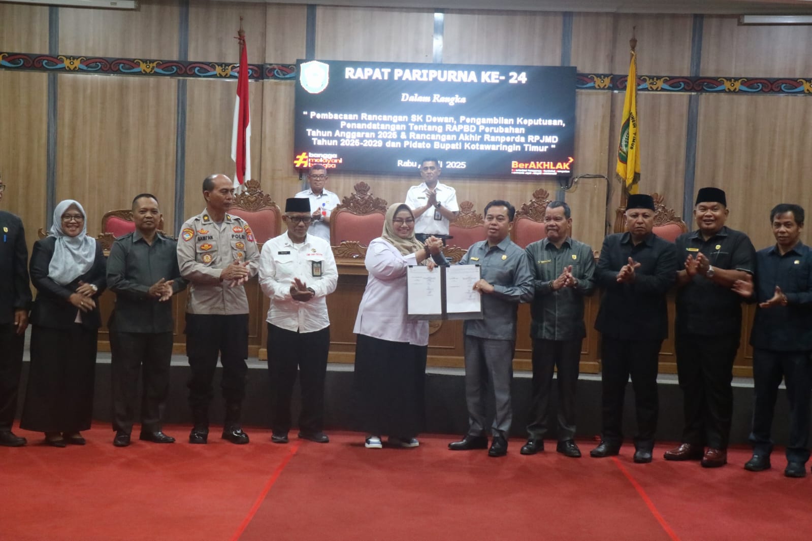 “Selanjutnya, berkenaan dengan Rancangan Peraturan Daerah tentang Perubahan APBD Tahun Anggaran 2025 ini, dengan telah ditandatanganinya persetujuan bersama terhadap Rancangan Peraturan Daerah tentang Perubahan APBD Tahun Anggaran 2025 dan Rancangan Peraturan Daerah tentang RPJMD Tahun 2025-2029, maka selanjutnya rancangan peraturan daerah ini akan disampaikan kepada Gubernur Kalimantan Tengah untuk dievaluasi,” tambahnya.