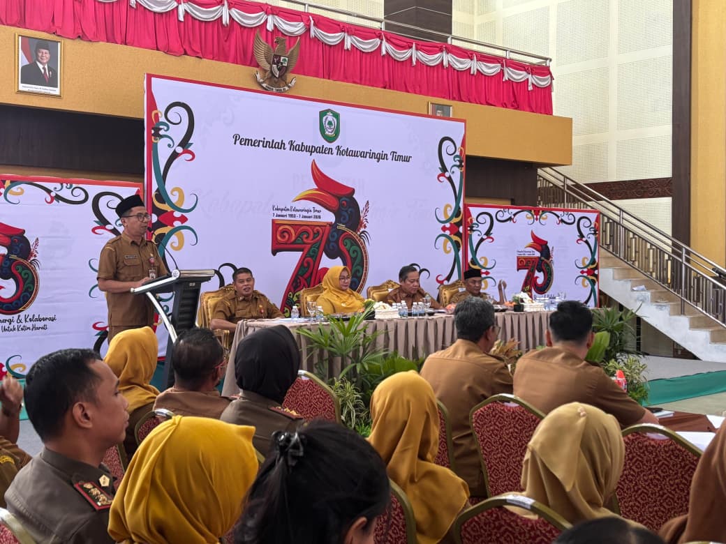 Sampit — Pemerintah Kabupaten Kotawaringin Timur (Kotim) melaksanakan Rapat Internal Evaluasi Akhir Tahun 2025 terkait pelaksanaan rencana pembangunan daerah. Rapat tersebut dipimpin oleh Wakil Bupati Hj. Irawati, S.Pd., M.AP., didampingi Pj. Sekretaris Daerah. Kegiatan yang digelar di Aula Rumah Jabatan Bupati Kotawaringin Timur, Senin (29/12/2025), ini menjadi forum strategis untuk meninjau capaian kinerja pembangunan selama satu tahun terakhir.
