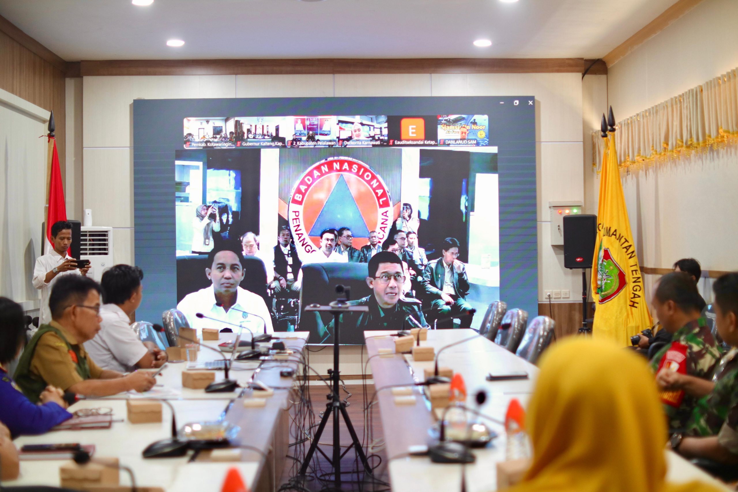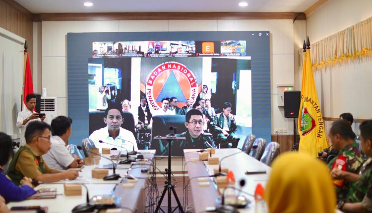 Badan Nasional Penanggulangan Bencana (BNPB) bersama Kementerian Kehutanan dan lembaga terkait menggelar rapat monitoring penanganan kebakaran hutan dan lahan (karhutla) tahun 2025 secara virtual, Senin (28/02/2025). Kegiatan ini dilaksanakan serentak di seluruh Indonesia, termasuk di Ruang Rapat Gedung B Sekretariat Daerah Kabupaten Kotawaringin Timur (Setda Kotim).