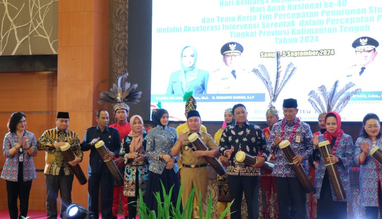 Kabupaten Kotawaringin Timur (Kotim) menjadi tuan rumah dalam rangkaian acara penting yang melibatkan peringatan Hari Keluarga Nasional ke-31, Hari Anak Nasional ke-40, serta Temu Kerja Tim Percepatan Penurunan Stunting se-Provinsi Kalimantan Tengah. Acara tersebut dibuka secara resmi oleh Gubernur Kalimantan Tengah, Sugianto Sabran, di hadapan tamu undangan ditandai dengan pemukulan katambung, Kamis (05/09/2024).