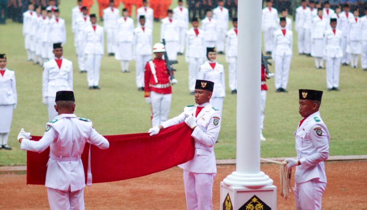 Meski Diguyur Hujan, Upacara Penurunan Bendera Merah Putih Berjalan Lancar