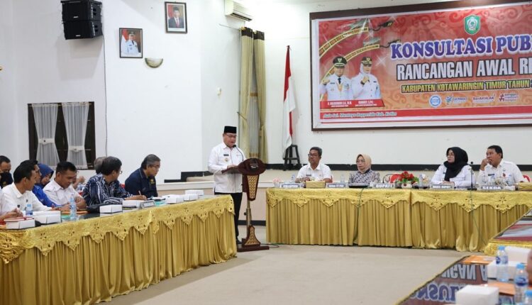 Bupati Kotawaringin Timur (Kotim) H.Halikinnor secara resmi membuka penyelenggaraan Forum Konsultasi Publik Rancangan Awal Rencana Kerja Pemerintah Daerah (RKPD) Kabupaten Kotawaringin Timur Tahun 2025 kegiatan yang bertema “Penguatan Ekonomi Melalui Percepatan Pembangunan Infrastruktur, Ketahanan Pangan, Dan Sumber Daya Manusia Berkualitas”, bertempat di aula Sei Mentaya Badan Perencanaan Pembangunan, Riset dan Inovasi Daerah Kotim, Rabu (21/02/2024).