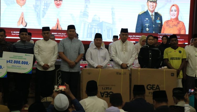 Pada kesempatan tersebut diserahkan bantuan berupa kursi roda, santunan jaminan kematian, dan hibah untuk masjid sebagai wujud perhatian dan kepedulian Pemkab Kotim terhadap masyarakat.