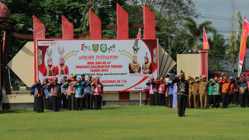 Pemerintah Kabupaten Kotawaringin Timur (Pemkab Kotim) selenggarakan Upacara Peringatan Hari Jadi ke-67 Provinsi Kalimantan Tengah (Kalteng) dan Hari Kebangkitan Nasional ke-116 di Halaman Kantor Bupati Kotim, Senin (27/05/2024).
