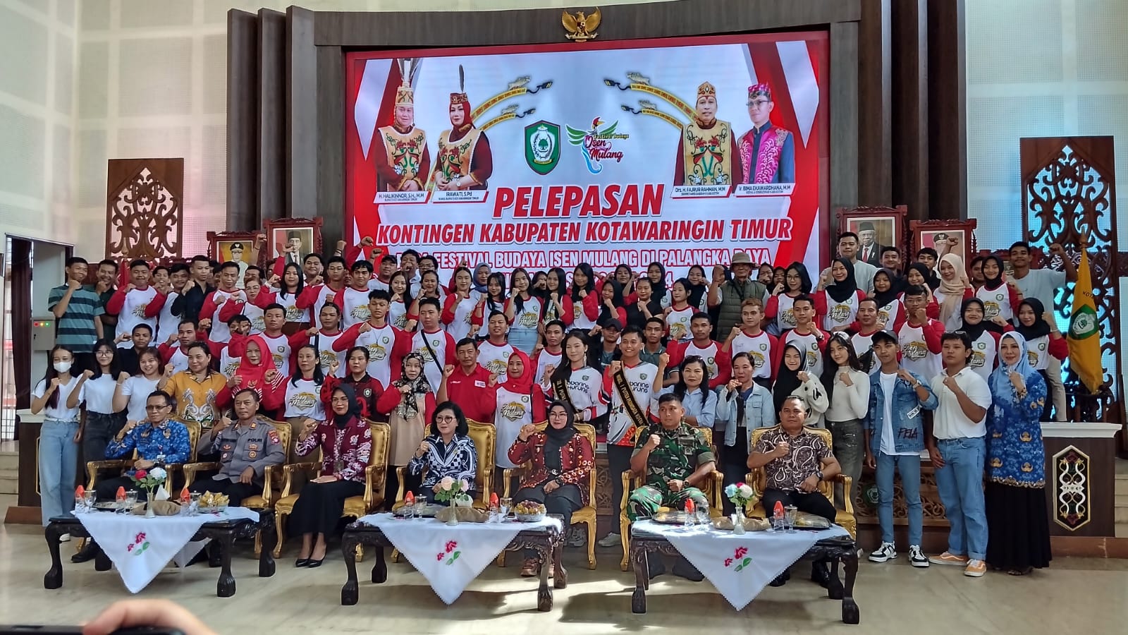 Bupati Kotawaringin Timur (Kotim) H.Halikinnor, SH., MM, dalam hal ini diwakilkan oleh Wakil Bupati Kotim Irawati, S.Pd secara resmi melepas kontingen yang akan ikut berpartisipasi dalam Festival Budaya Isen Mulang (FBIM) di Palangka Raya. Kegiatan tersebut dilaksanakan di Rumah Jabatan Bupati Kotim, Jum’at (17/05/2024).