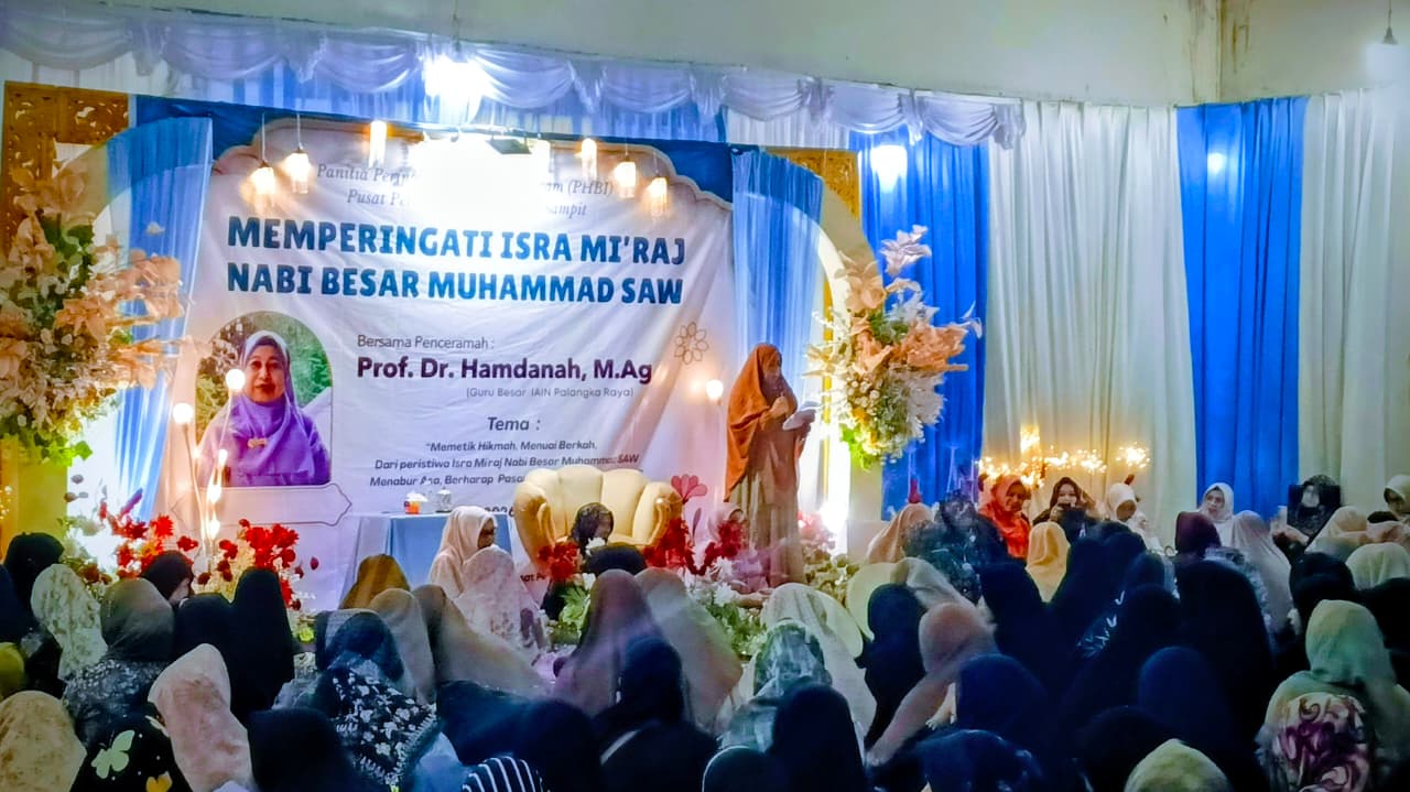 SAMPIT – Nuansa religius menyelimuti Ruang Pamer Utara (Hall) Pusat Perbelanjaan Mentaya (PPM) Sampit pada Jumat malam (16/1). Pemerintah Kabupaten Kotawaringin Timur (Kotim) menggelar peringatan Isra Mi’raj Nabi Muhammad Shalallahu ‘Alaihi Wasallam dengan menghadirkan Guru Besar IAIN Palangkaraya, Prof. Dr. Hamdanah, M.Ag, sebagai penceramah utama.