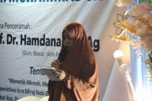 Puncak acara diisi dengan tausiyah oleh Prof. Dr. Hamdanah, M.Ag. Dalam ceramahnya, Guru Besar IAIN Palangkaraya tersebut mengupas tuntas hikmah perjalanan agung Nabi Muhammad Shalallahu ‘Alaihi Wasallam. Kegiatan ini diharapkan dapat mempererat tali silaturahmi antarwarga sekaligus meneguhkan komitmen bersama untuk membangun Kotawaringin Timur yang lebih religius, damai dan berakhlak mulia.