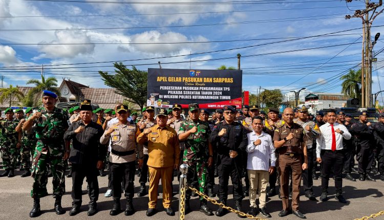 Polres Kotawaringin Timur (Kotim) melaksanakan apel gelar pasukan dan sarana prasarana (sarpras) dalam rangka pergeseran pasukan pengamanan Tempat Pemungutan Suara (TPS) Pilkada serentak tahun 2024 di wilayah hukum Polres Kotim, Senin (25/11/2024).