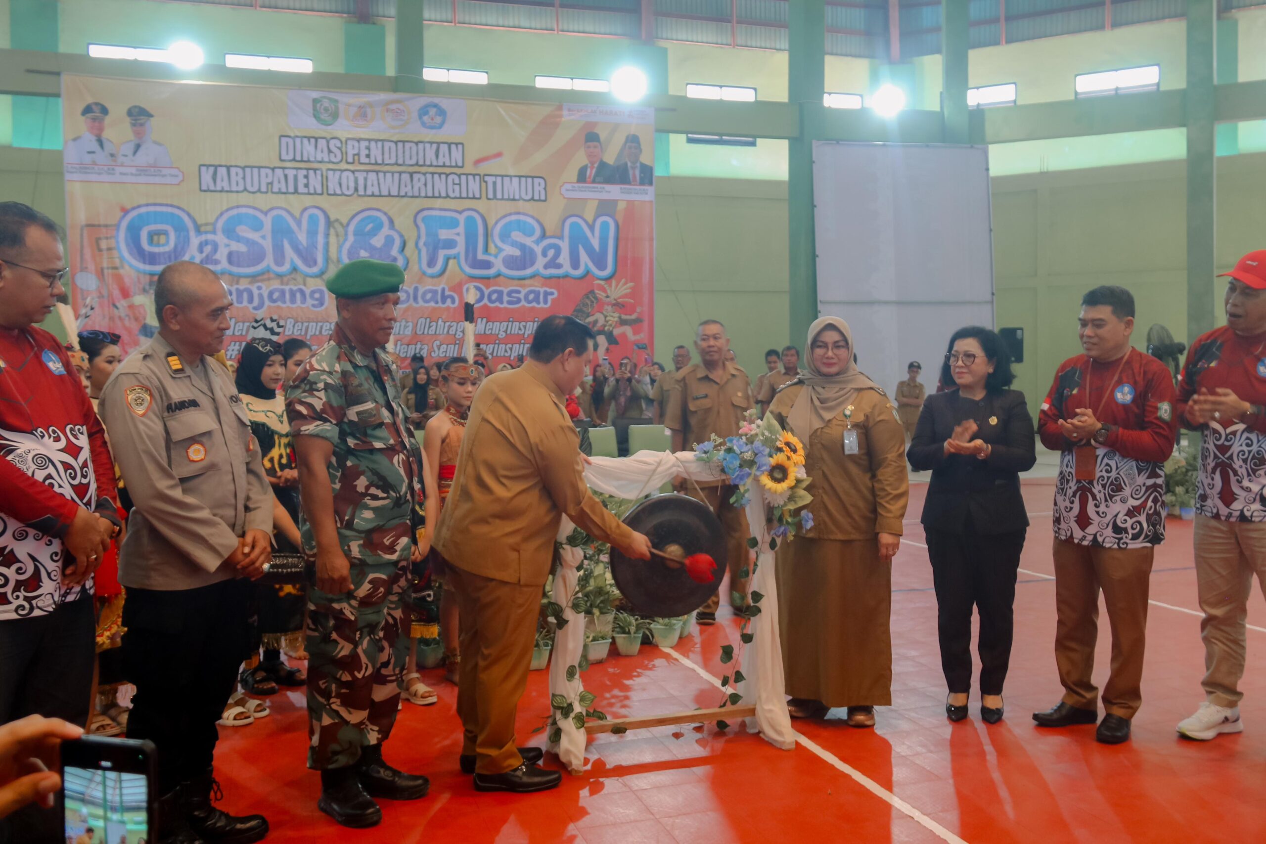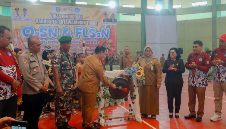 Kegiatan O2SN dan FLS2N tingkat Sekolah Dasar (SD)/Sederajat secara simbolis dibuka pelaksanaannya pada Senin (22/04/2024), bertempat di Gor Voly Indoor Sampit. Bupati H. Halikinnor, S.H., M.M., menandai pembukaan kegiatan ini dengan pemukulan gong bersama Wakil Bupati Irawati, S.Pd., Ketua DPRD Kotawaringin Timur, Kepala Dinas Pendidikan, dan unsur forkopimda lainnya.